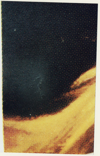 | Another damaged area not mentioned... Again, looking now at the photo of this poster Debi sent me during early discussions, I can now see that this damage was evident then too, knowing where to look, and not just a photographic aberation. |